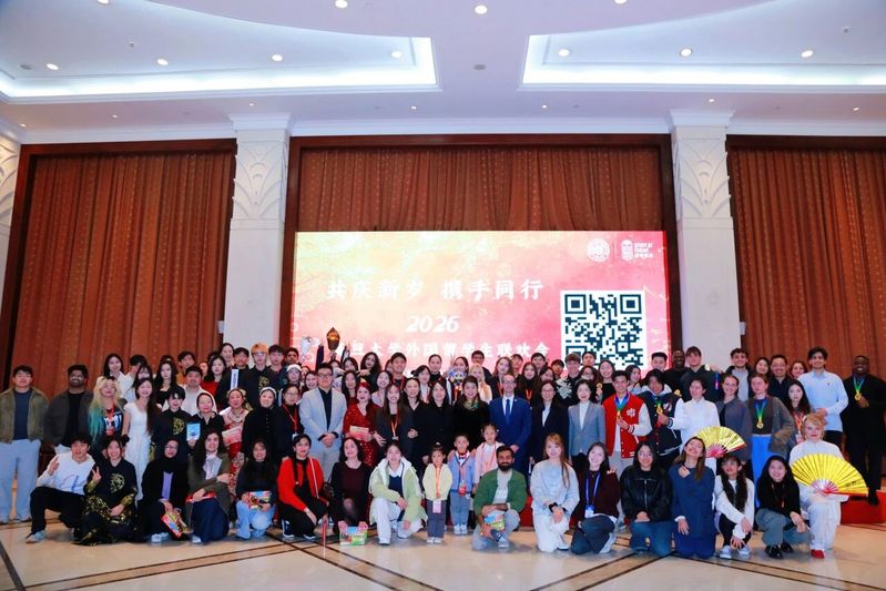 12月19日晚,2026年复旦大学外国留学生联欢会在邯郸校区光华楼13楼多功能厅举行。校内相关部门嘉宾代表、外国留学生工作处老师、留学生校友以及来自世界各地的中外学生近200人参加联欢会。
